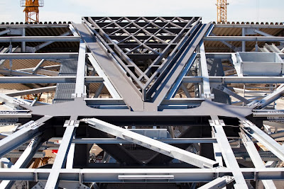 dem spektakulären Stahlgebilde ist kein einziges Bauteil waagerecht