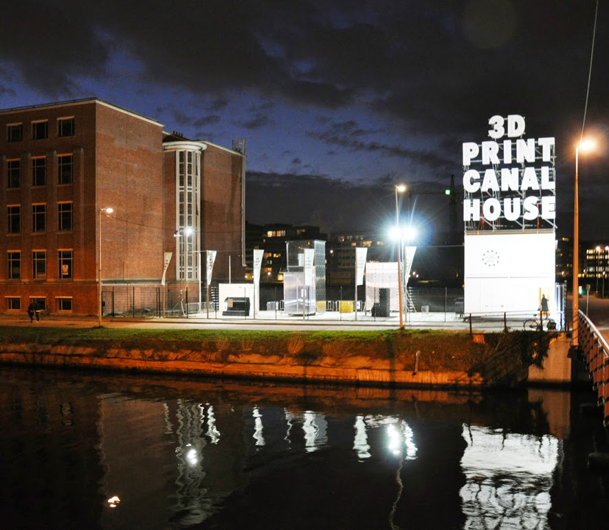 Auf einer kleinen Parzelle im Norden Amsterdams, nur einige hundert Meter vom EYE-Filminstitut von Delugan Meissl Associated Architects entfernt, experimentieren DUS Architecten aus Amsterdam seit dem 1. März 2014 mit einem eigens entwickelten 3-D-Drucker namens „KamerMaker“ an der Machbarkeit eines typischen Amsterdamer Grachtenhauses, dem Canal House. In einer typisch holländischen Mischung aus charmanter Frische und kalkulierender Selbstvermarktung wurde das auf drei Jahre angelegte Projekt auf dieser Parzelle als eine Mischung zwischen Baustelle, Forschungszentrum und Museum eingerichtet.